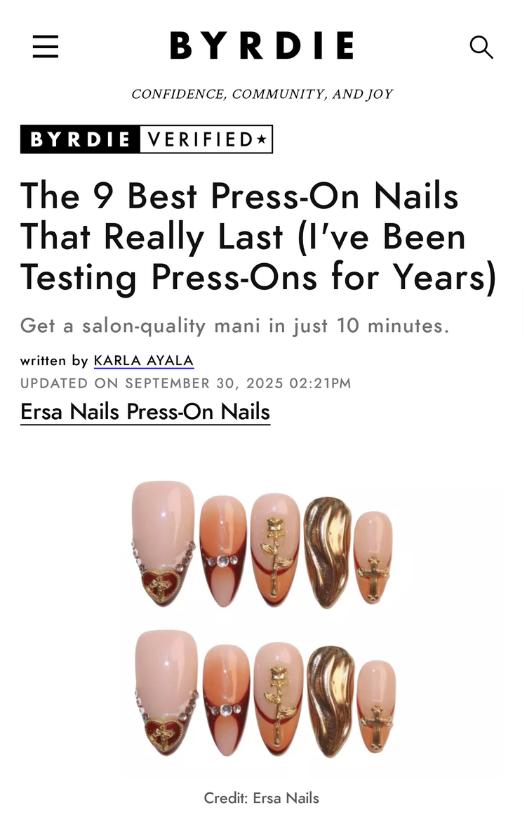 Discover the ErsaNails Valentine's Day collection — a handmade, salon-quality lineup of press-on nails that are reusable for multiple wears. Achieve flawless, long-lasting mani in minutes, from timeless neutrals to bold statements. No salon trip needed—glow up anytime!