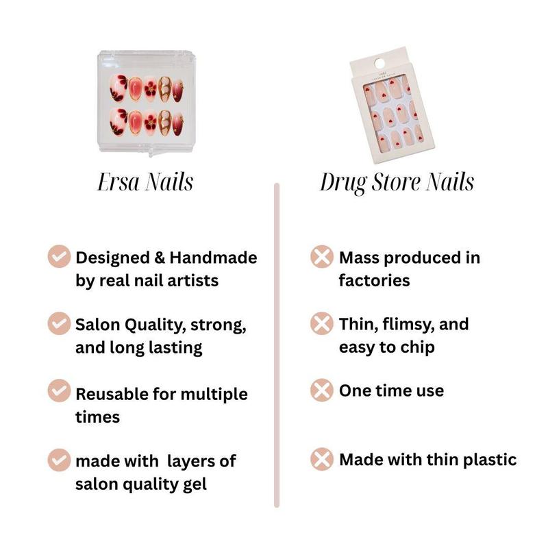 Long-lasting: Flimsy drugstore nails pop off fast—ours are built to last for weeks.
